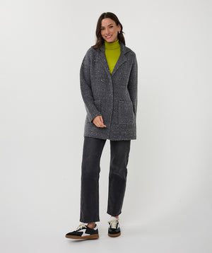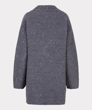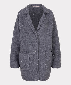 This stylish Esqualo cardigan is a must have for your fall and winter wardrobe. Showcasing a gorgeous Melange Grey colour with an all-over subtle silver sparkle. This soft, chunky knit offers both comfort and warmth.
