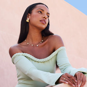 Bold, sculptural, and effortlessly glamorous ✨ The Lumi Pearl Earrings are made to turn heads. Featuring softly shaped golden petals finished with glistening crystals and luminous pearl details, they bring the perfect balance of statement style and modern elegance. Wear them to elevate a simple everyday outfit—or let them shine as your go-to piece for evening looks.
