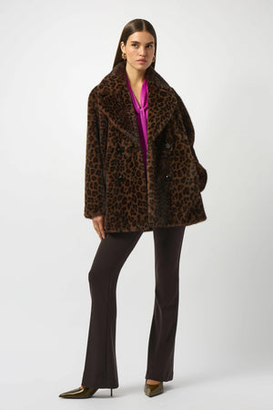 Unleash your inner diva with this ultra-chic faux fur jacket, showcasing a striking leopard print and a plush satin lining for ultimate warmth and comfort. The double-breasted design, paired with a notched collar and wide lapels, effortlessly combines timeless elegance with modern flair. A perfect statement piece for any fashion-forward wardrobe.