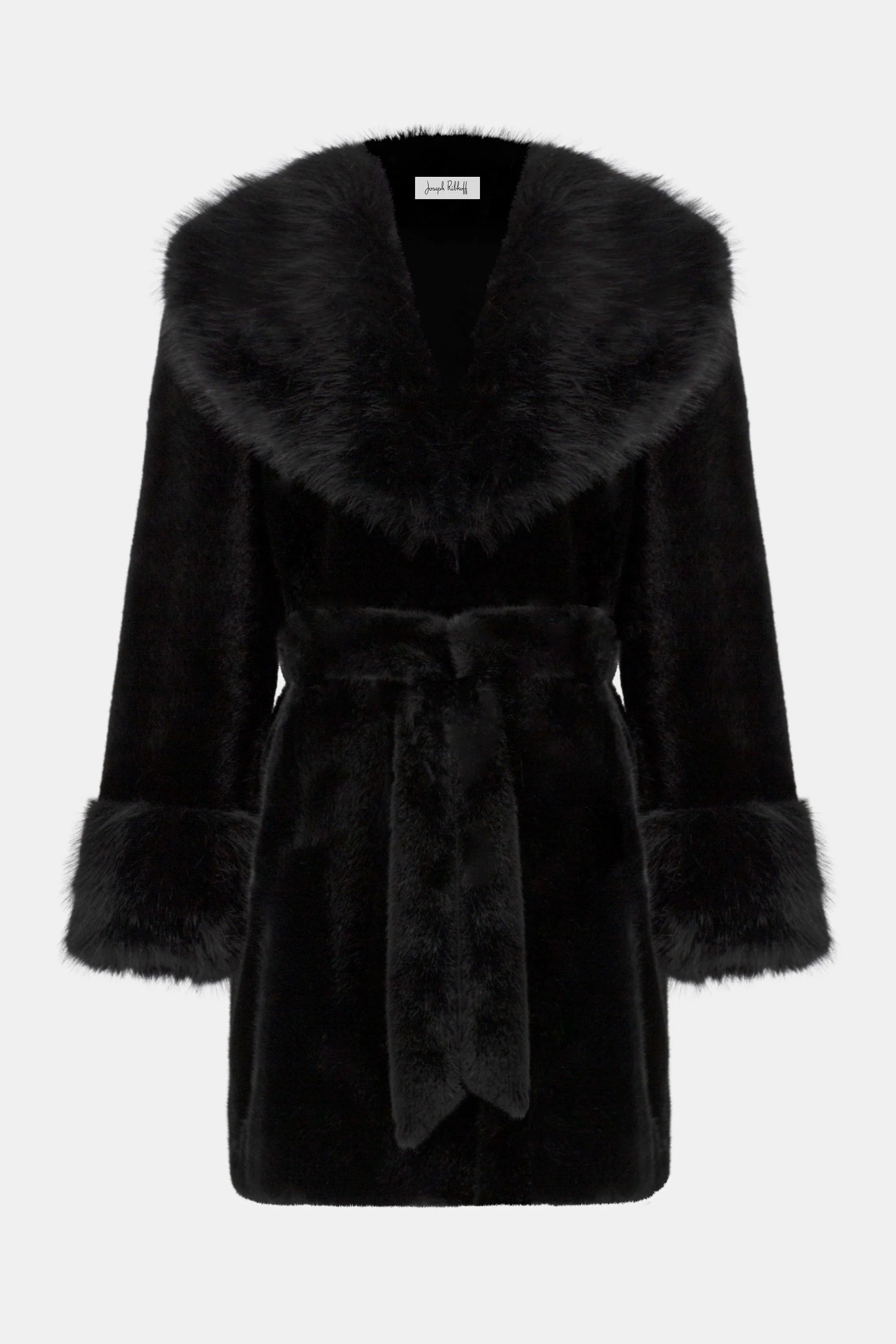 Joseph Ribkoff Faux Fur Shawl Collar Fitted Coat