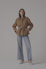 This cotton twill short trench is designed with a swing silhouette, belted waist, and raglan sleeves. Accented with heat-transfer Rhinestones and metal studs on the collar, pockets, and back storm flap, it combines classic style with a touch of sparkle.