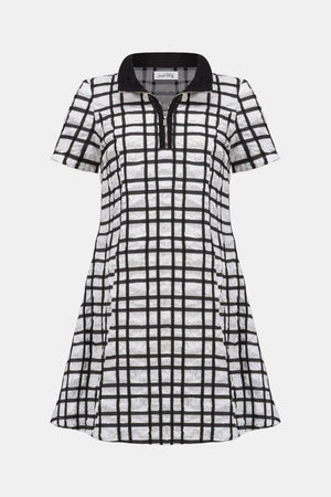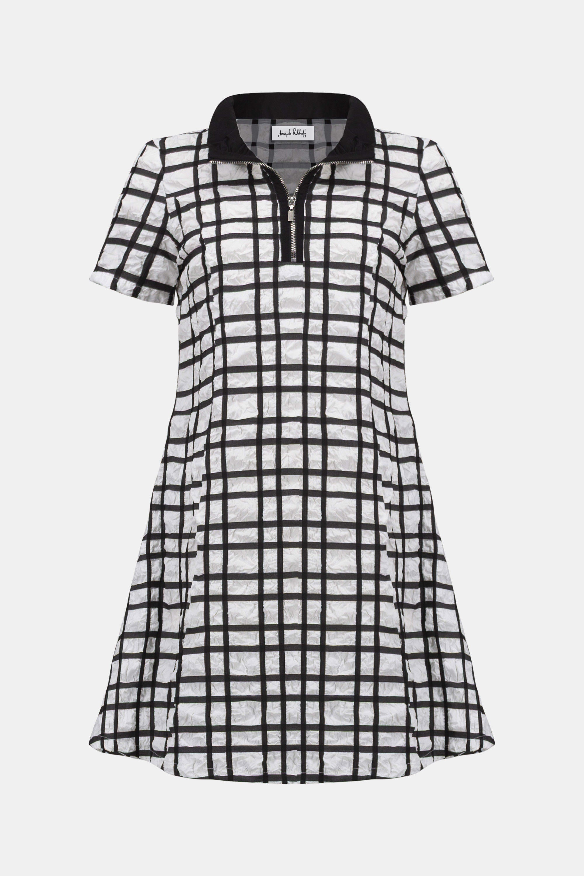 This plaid bubble jacquard dress blends everyday comfort with standout structure. A memory shirred funnel collar with front zipper adds volume, while short sleeves and inseam pockets keep the look grounded.