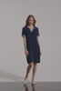 This silky knit trapeze dress is a perfect blend of refinement and comfort, with its ribbed polo collar and short sleeves. Inseam pockets keep things practical, while the flowy shape adds a modern edge.