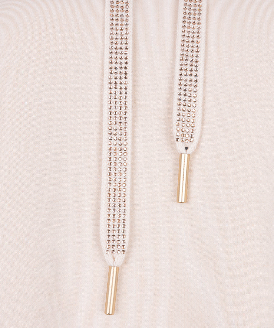Indulge in cozy comfort with this Esqualo cream hoodie. The hoodie has a relaxed fit with an embellished drawstring hood and long sleeves.