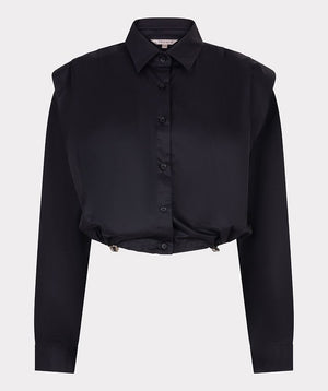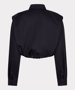 The Esqualo cropped blouse jacket is a cool and modern piece designed to make a statement. Featuring structured shoulder pads and an adjustable elastic waist, it combines sharp tailoring with comfort and versatility. Crafted from 100% cotton, it offers a breathable and natural feel while maintaining a polished look. Perfect on its own or styled as a set with the matching skirt, this jacket adds a contemporary edge to any wardrobe. The model is 1.73 m tall and wears size S.