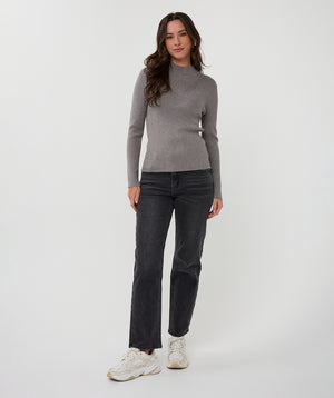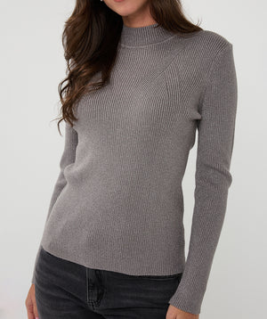 • The Esqualo Ribbed Lurex Mock Neck Top showcases a sophisticated blend of texture and subtle metallic sheen. Its ribbed construction offers a comfortable, form-fitting silhouette, while the mock neck design adds a modern, elegant touch.