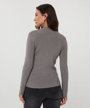 Esqualo Ribbed Lurex Mock neck Top