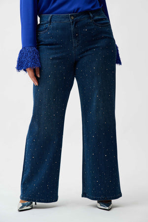 Crafted from ultra-soft Featherweave® denim, these classic wide leg jeans offer a perfect blend of comfort and a flattering fit. Subtle all-over rhinestones add a touch of sparkle, making them an easy yes for fashion lovers.