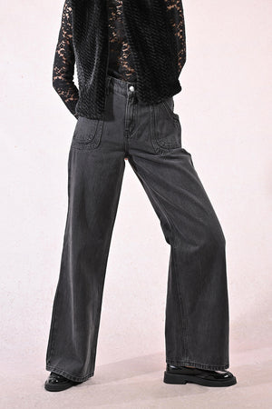 A contemporary casual essential that blends raw, wide-leg style with thoughtful pocket details for everyday wear.