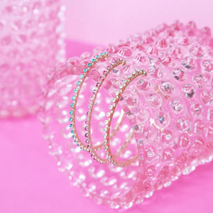 An updated version of our all-time favourite Miro Bracelet. Let us introduce you to Miro Bangle, the perfect piece to give you the right amount of shimmer and shine to any look! Available in Crystal, Light Turquoise and Rose. Comes in an adjustable size for added versatility…