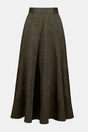 Joseph Ribkoff Avocado Pleated Satin Long Flared Skirt