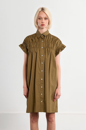 Shirt dress -Short sleeves with ruffles -Shirt collar -Smocked shoulders -Full-length front button closure -Straight fit -Length from the shoulder 92cm for a size S