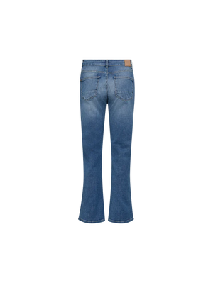 Designed with a high-rise waist, classic five-pocket styling, and a concealed zip and button fastening, they deliver a clean, streamlined look. The subtle flare from the knee adds a hint of retro charm, making them perfect to pair with a tucked-in blouse or a statement tee.