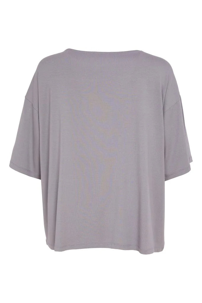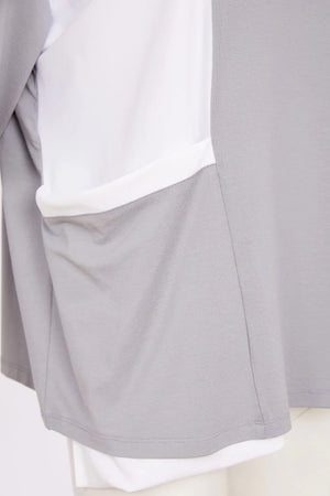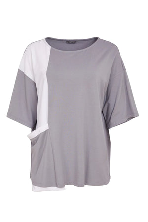 Crafted in a soft stretch jersey, the relaxed shape features must-have short sleeves and a flattering round neckline. A contrasting colour panel runs asymmetrically down one side, extending through the hem for added impact. The softly folding pocket detail enhances the layered look, creating subtle movement and an unexpected design finish. A dipped hem adds extra dimension, making it perfect for pairing with slim trousers or coordinating skirts.