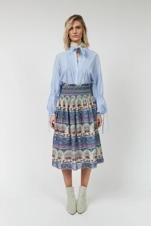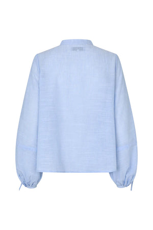 LannaLL is a light and feminine shirt in a beautiful light blue tone that brings a fresh and elegant touch to your wardrobe. The delicate pleats at the front create a refined and sophisticated look, while the adjustable ties at the sleeves add a romantic, feminine detail. Wear them loosely for a relaxed feel or pull them tighter to enhance the soft gathered effect and highlight the gentle volume of the sleeves.