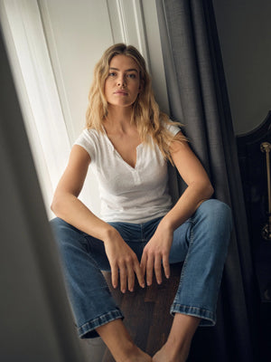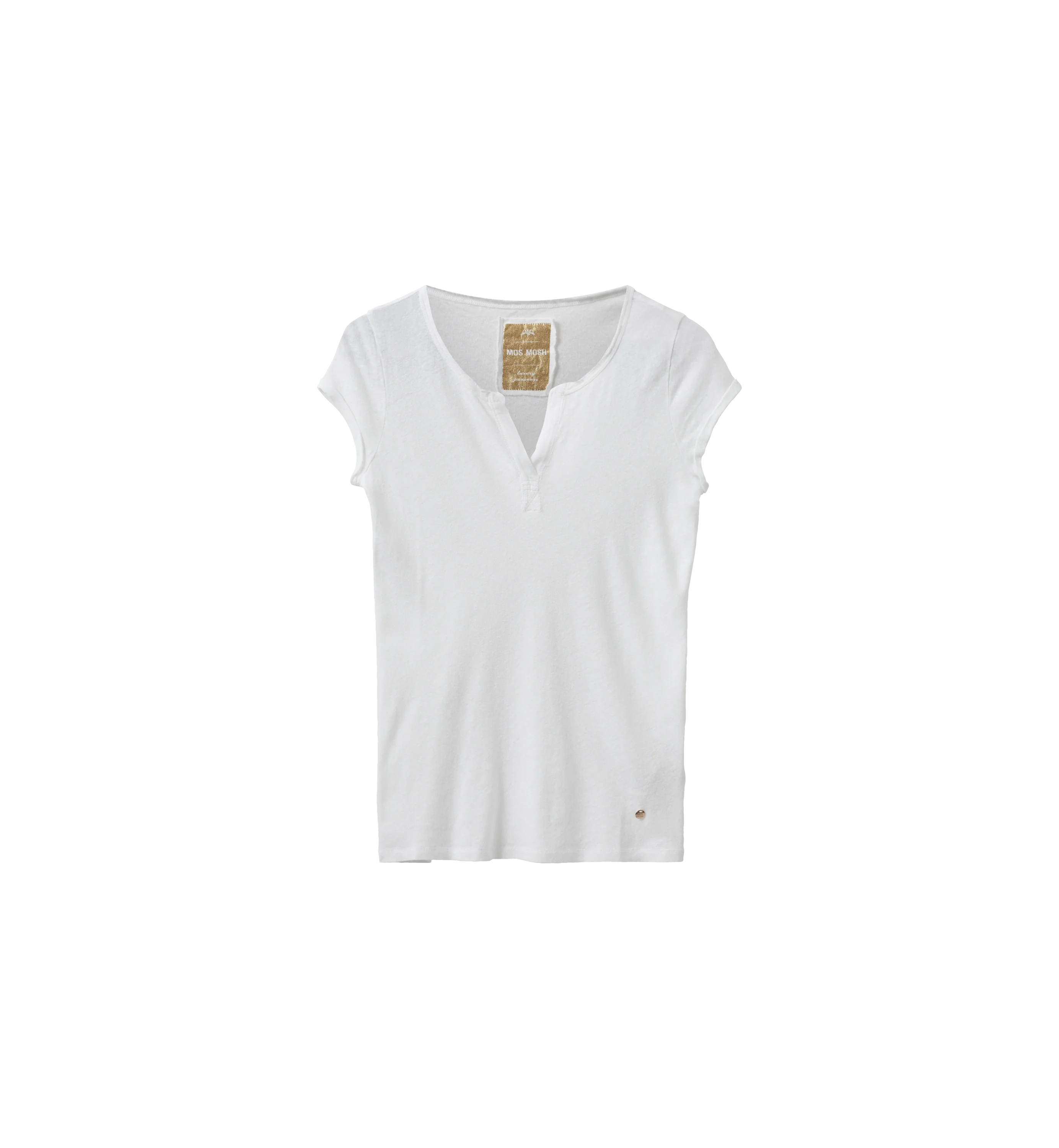 A timeless MOS MOSH favourite, the Troy Tee is crafted from a soft cotton-linen blend for a light, breathable feel. Designed in a relaxed fit, it features a flattering V-neckline with a feminine placket detail and subtle roll-edge sleeves for a casual yet refined finish. An easy everyday essential that works just as well styled with denim as it does under tailored pieces.