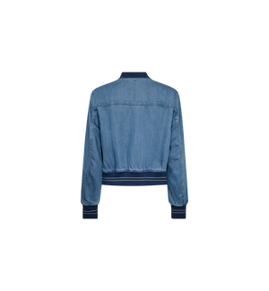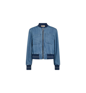 The Mos Mosh Cate Onyx Jacket (Style 176620) is a lightweight layer that adds a sporty edge to any outfit. Crafted from 100% TENCEL™ Lyocell, the soft, fluid fabric drapes beautifully and feels smooth and breathable against the skin. Designed with a zip-through front, relaxed silhouette, and ribbed cuffs and hem for subtle contrast, it blends casual ease with modern structure. The light blue denim tone enhances its laid-back appeal, making it perfect to style with jeans for an effortless daytime look or layered over a dress to create relaxed, contemporary contrast. Finished with a 100% polyester lining, it offers comfort and easy wear throughout the season.