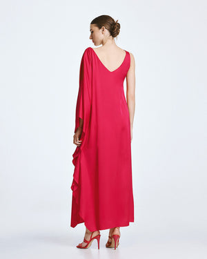 This Access Fashion one-shoulder candy dress is a striking, fluid design that combines bold elegance with graceful movement. Crafted from a soft, lightweight blend of 76% viscose, 22% rayon, and 2% elastane, it drapes beautifully over the body while offering a subtle stretch for comfort. The asymmetric silhouette features a delicate V-neckline and a single flowing sleeve that cascades into a dramatic draped panel, creating an effortlessly sophisticated look. Falling to a maxi length, the dress moves fluidly with each step and reveals a soft side slit that adds a touch of allure, making it an ideal choice for evening events, formal occasions, or statement summer styling.