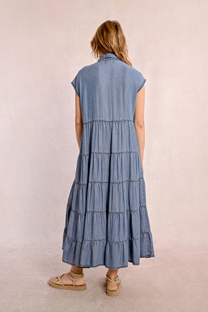 The Molly Bracken Denim Blue Dress is a lightweight and flowy piece, perfect for casual outings or summer days. Its relaxed yet structured design gives it a chic and effortless look.