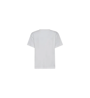 • This Mos Mosh tee is an effortlessly stylish wardrobe staple designed for both comfort and modern appeal. Crafted from 100% organic cotton, it feels soft and breathable against the skin, while its loose fit, short sleeves, and classic O-neckline give it a relaxed yet flattering silhouette. The standout feature is its bold front print, which adds a contemporary, graphic edge and transforms a simple white tee into a statement piece. Perfect for casual styling, it pairs seamlessly with jeans, shorts, or layered under a blazer for a chic twist. Easy to care for, it is best washed cold on a gentle cycle, inside out and with similar colours, to preserve both the fabric and the print.