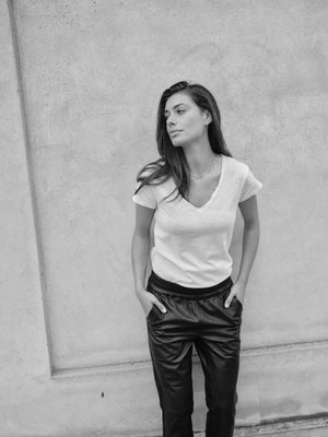 The Mos Mosh Tulli T-Shirt is a wardrobe essential with a sustainable twist. Crafted from soft, organic cotton and GOTS certified, this basic white tee delivers both comfort and conscious style. It features a flattering V-neckline, short sleeves, and a gently fitted silhouette that drapes beautifully. With its minimalist design and high-quality fabric, it's perfect for layering or wearing solo—ideal for styling with denim, tailoring, or leather trousers for a cool, effortless look. A timeless staple with eco-friendly credentials.