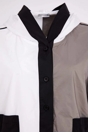 The NAYA Two Tone Hooded Jacket is a casual statement piece designed with plenty of personality. Featuring a soft hood and adjustable drawstring hem, this lightweight style stands out thanks to its striking neutral colour blocking. Cleverly placed contrast panels and bold patch pockets create a flattering silhouette while adding a contemporary, sporty edge. The short sleeve design and relaxed fit make it perfect for layering, offering both comfort and modern styling in one versatile piece. Crafted from 100% polyester, it combines practicality with standout design. Care instructions include a 30 degree delicate wash, cool iron, do not bleach, do not tumble dry, and dry clean except trichloroethylene.