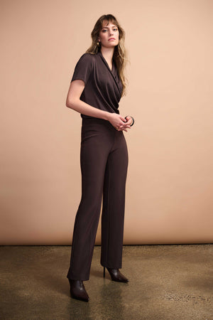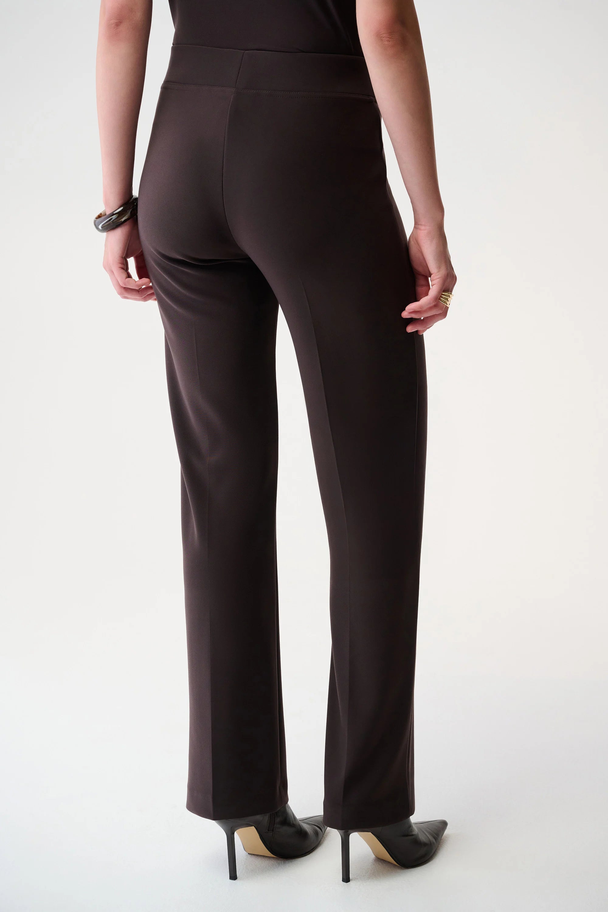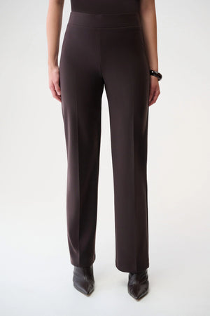 Create the illusion of longer legs with a slightly higher waistline in these wide-leg pants. The 32-inch inseam creates a lengthening effect especially when paired with a tucked-in blouse and fashionable heels. The silky knit fabric and elasticized waistband offer class with unparalleled comfort.