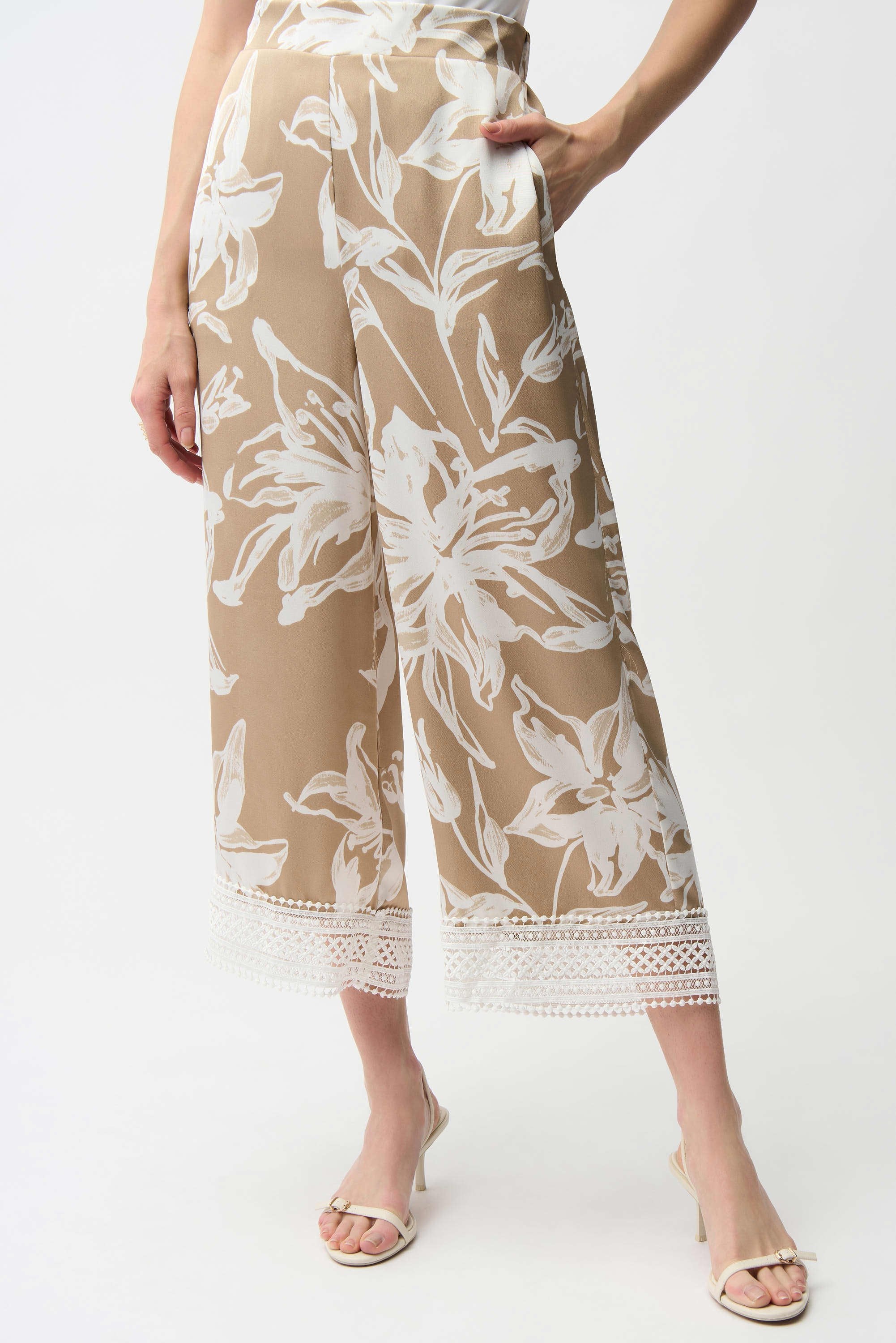 Joseph Ribkoff Recycled Satin Floral Print Pull-On Culotte Pants