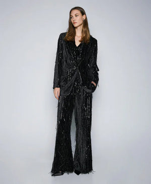 Wide-leg velvet pants with sequins. Features a hidden zip fastening at the side and sequin fringe details. Pair it with the matching vest from our collection for impressive formal looks.