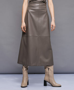• This midi faux leather skirt is a timeless and sophisticated piece designed to elevate elegant looks with a modern edge. Crafted from stable faux leather fabric, it features a smooth and structured finish that flatters the silhouette while maintaining comfort and durability. The skirt sits beautifully at a midi length, offering a sleek and graceful line that transitions effortlessly from day to evening wear. It is fully lined on the inside for a smooth fit and added comfort, while the discreet back zip closure ensures a clean and polished appearance. Made from 100% polyester both inside and out, this piece combines functionality with refined style. Pair it with a tailored blouse or a fitted top and boots for a chic, contemporary ensemble that exudes confidence and poise.