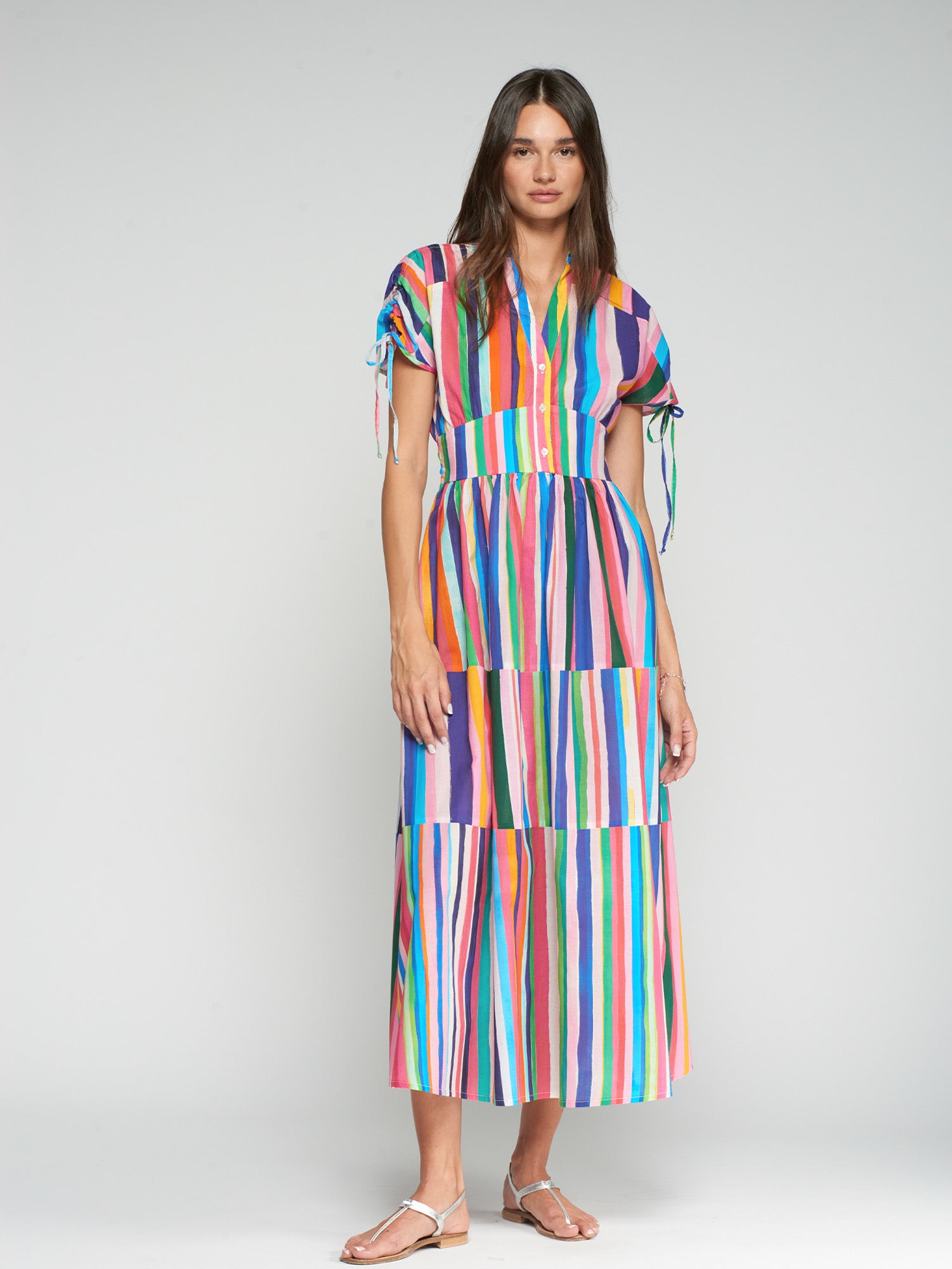 • This eye-catching Vilagallo maxi dress is crafted from 100% cotton, making it light, breathable, and perfect for warm-weather days. Designed with bold multicolour vertical stripes, it reflects the brand’s joyful, Mediterranean-inspired aesthetic.