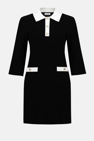 This charming knee-length dress combines luxurious knit fabric, three-quarter sleeves, and a classic shirt collar for an effortlessly chic look. Accented with contrasting fabric at the collar, placket, and faux pockets, it radiates casual charm. A versatile piece that’s sure to garner a compliment or two, this dress is ready to be your new go-to for everyday style.