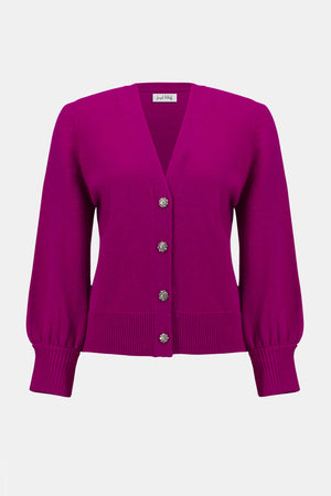 Elevate your layering game with this chic cardigan, featuring a flattering V-neckline, long puff sleeves, and dazzling rhinestone buttons for a touch of glamour. Crafted from a soft sweater knit, it offers a straight silhouette that combines effortless style with cozy comfort. Perfect for pairing with high-waisted jeans or a sleek pencil skirt for an effortlessly polished look.