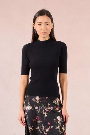 Ribbed knit sweater -Short sleeves -Semi-stand-up collar -Slim fit -Length from the shoulder 55 cm for a size S