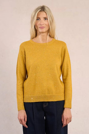 Knitted sweater studded with sequins -Long sleeves -Round neckline close to the neck -Straight fit -Ribbed collar, cuffs and bottom finish -Length from the shoulder 58 cm for a size S