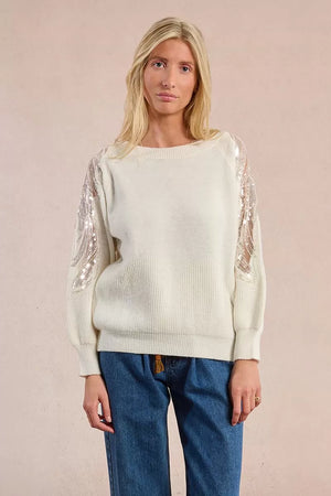 Molly Bracken Off White Sweater Sprinkled With Sequins