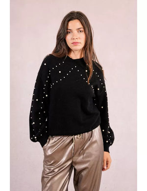 Beaded sweatshirt sweater -Long sleeves, balloon -Tightened cuffs -Semi-stand-up collar -Straight fit -Ribbed trims -Length from the shoulder 60cm for a size S