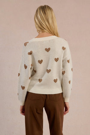 Add a touch of playful charm to your wardrobe with this off-white short cardigan featuring a delicate heart-pattern knit. Designed with long sleeves and a V-neckline, it offers a timeless and flattering silhouette.