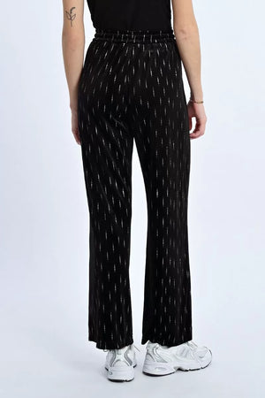 These stylish Lili Sidonio trousers blend casual ease with glamorous detail. Crafted in soft velvet fabric, they are studded with rhinestones that catch the light for a subtle sparkle. Designed in a modern jogger fit, they feature an elasticated high waist with a tie belt, offering both comfort and adjustability. Practical side pockets add functionality, while front pleats (clamps) refine the silhouette. With a straight cut and a side length of approximately 105 cm in size S, they offer an elegant drape that pairs effortlessly with both relaxed tops and tailored blazers.