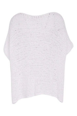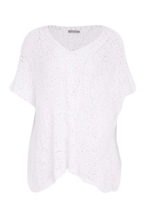 • The NAYA Waffle Knit is a fresh, lightweight layer designed for effortless summer styling. Crafted in crisp white, this knit features a textured waffle weave that adds subtle depth while remaining breathable and comfortable. The relaxed fit is complemented by a soft V-neckline, capped sleeves, and a gently dipped hem that flatters the silhouette and moves beautifully. Easy to layer over camis or wear on its own, this piece pairs seamlessly with trousers, skirts, or casual separates.