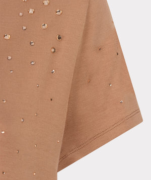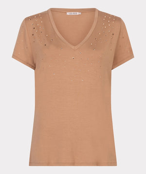 The EsQualo cappuccino T-shirt is a refined everyday essential with a subtle touch of glamour. Crafted in a soft, fluid fabric, it offers a comfortable fit with a beautiful drape that flatters the silhouette.