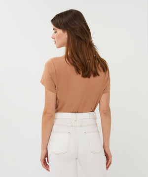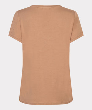 In a warm cappuccino shade, this T-shirt is easy to style and pairs effortlessly with light denim, tailored trousers, or skirts — perfect for elevating both casual and smart-casual outfits.