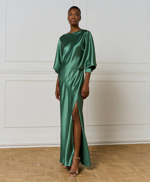 Access Fashion Basil Green Satin Dress With Draped Back