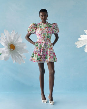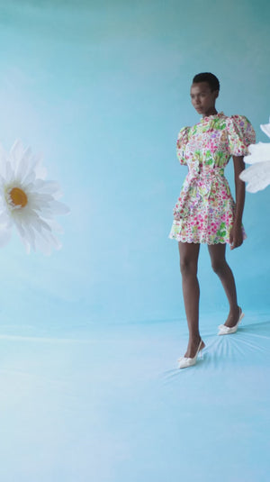 Crafted from crisp cotton, the design features a clean back zip closure for a seamless fit. The exclusive print—based on original artwork by Celia and created specially for this collection—adds a vibrant, joyful touch that captures the essence of summer.