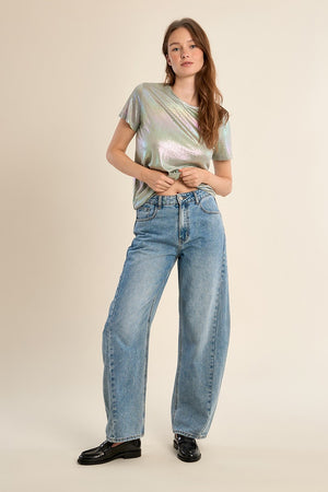 Add a subtle shimmer to your everyday wardrobe with this iridescent T-shirt from Molly Bracken. Crafted in a soft, lightweight fabric, it features a straight fit with short sleeves and a classic round neckline for effortless wear. The luminous finish catches the light beautifully, elevating a simple silhouette into a standout piece. Easy to style with jeans or tailored trousers, it’s perfect for both casual days and dressed-up evenings.