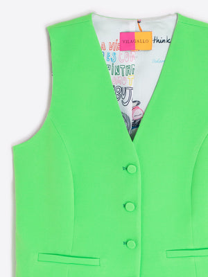 Make a bold style statement with this Vilagallo waistcoat, designed in a vibrant green that adds instant impact to any outfit. Cut in a tailored, sleeveless silhouette, it features a flattering V-neckline and a button-front fastening for a clean, structured look.